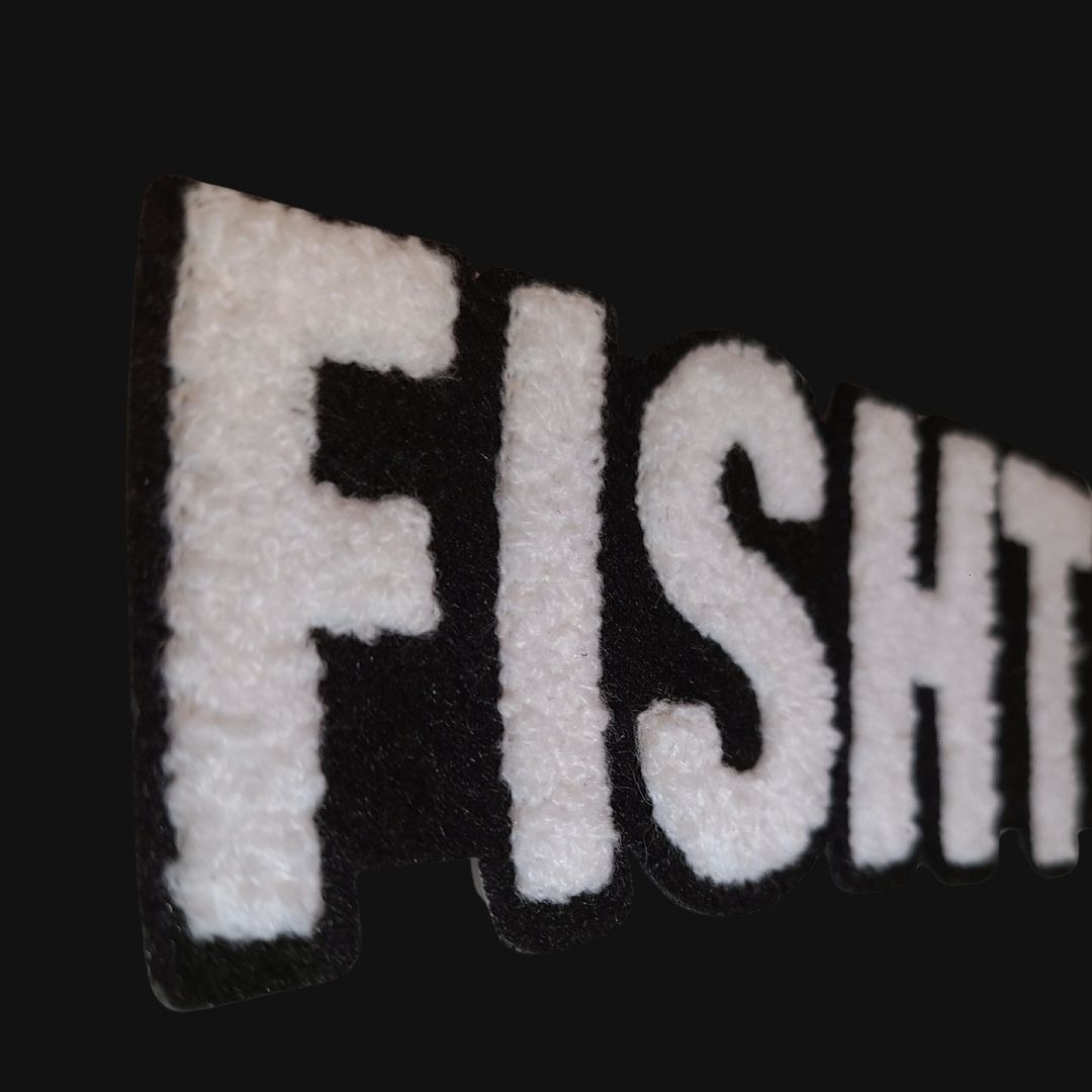 Unisex black crewneck sweatshirt with “Fishtown” in a soft, chenille embroidered patch.
