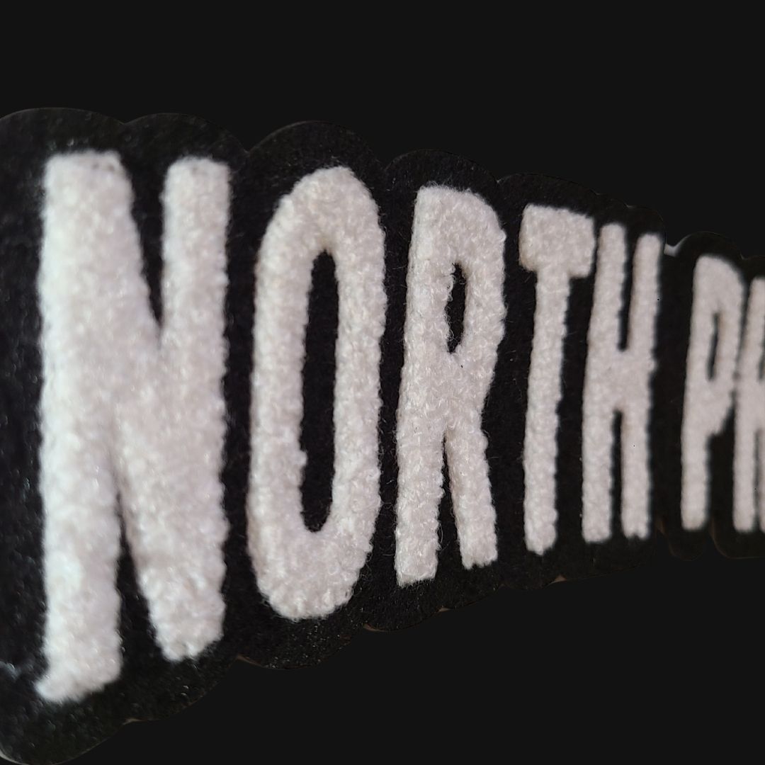 Unisex cut black t-shirt with “North Philly” in our standard font on the chest in soft-touch chenille embroidered patch.