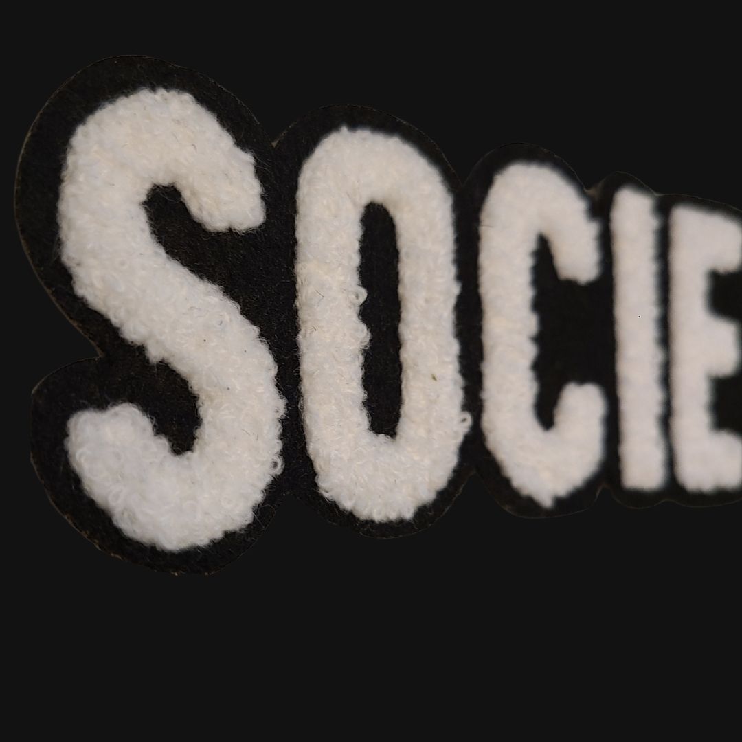 Unisex cut black t-shirt with “Society Hill” in our standard font on the chest in soft-touch chenille embroidered patch.